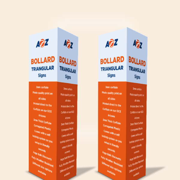 Bollard Signs are a 3-sided board which stands up with the longest edge being vertical. Typically, they wrap around a pole or post, so wind cannot blow it away. This product is ultra-portable and can be used time and time again thanks to its interlocking nature.