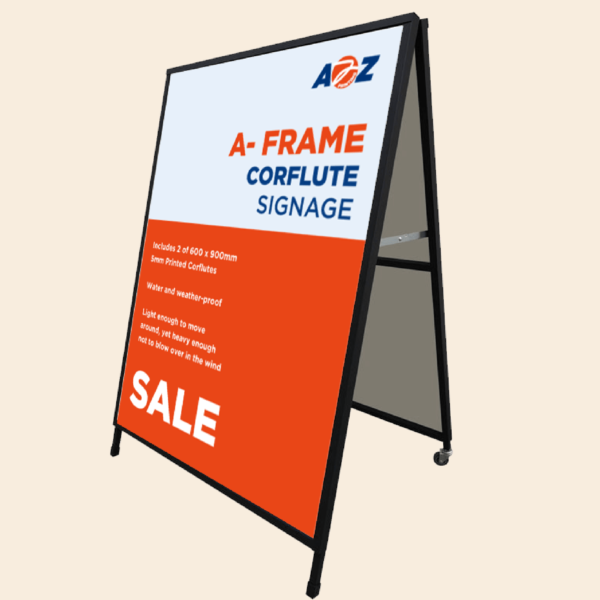 With our fully portable Corflute Insertable A Frame Sandwich Board you can change signage message as often as you like. So you can rotate your product offering and reuse the previous signage.