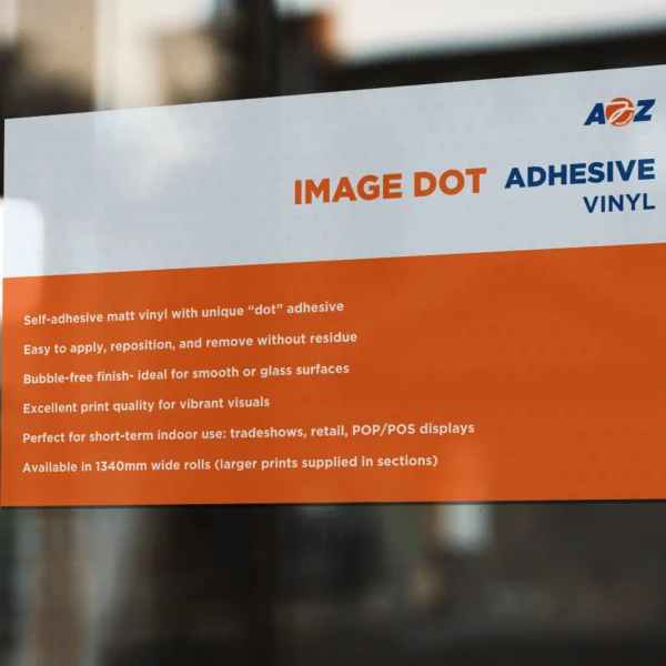 ImagePerfect™ 2575 Image Dot is a self-adhesive, matt vinyl with a special “dot” adhesive, rather than a smooth coating. The film is very easy to handle and can be applied quickly, even by untrained users. It delivers a bubble free finish as air travels between the adhesive dots, and can be removed and re-stuck without leaving any adhesive residue. Best results are achieved on glass, or other smooth/glossy surfaces. It delivers excellent print quality