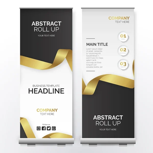 - The banners easily retract into the stand and can be setup in seconds by pulling up the banner and inserting the pole.