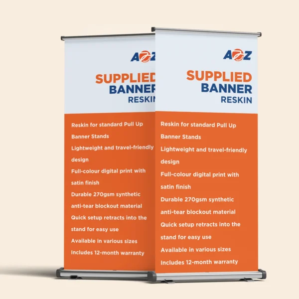 Reskin of a standard Pull Up Banner Stand using our synthetic 200gsm anti tear blockout material.