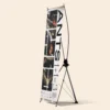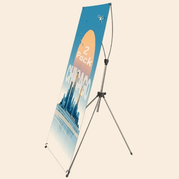 This TRIPOD banner display is ideal for indoor advertising. Unlike other banner display stands, the X Banner (tripod banner) Stand is very lightweight and presents your message using a vertical banner. This banner display stand is constructed from lightweight aluminum with strong plastic connectors.